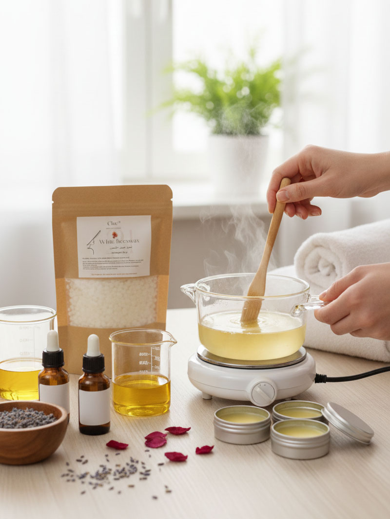 A highly purified natural wax, essential for creating firm textures in professional lip balms, lotions, and premium candles.